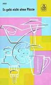 Mit seinen über zweihundert farbigen Produktabbildungen und ausführlichen Beschreibungen („Käseglocke, Glocke glasklar Polystyrol, Unterteil Meladur, farbig, EVP 2,35“) sowie ausgesprochen reizvoll im Stil der Zeit gestalteten Deckblättern zu den einzelnen Abteilungen wie „Haus- und Küchengeräte“ oder „Wasch- und Toilettenartikel“ gibt er einen umfassenden Überblick über die um 1960 in der DDR produzierte Bandbreite von Plastartikeln für den Haushalt. Vor allem erweisen sich die Informationen über die jeweils verwendeten Kunststoffarten als sehr hilfreich, da die in Fachbüchern verbreitete Methode zur Einordnung, nämlich vom Objekt „mechanisch einen Span zu lösen“ und über einer Flamme zu erhitzen, um an der entsprechenden Reaktion (z.B. „sprühende Verbrennung“, „starke Dampfentwicklung“) den jeweiligen Typ zu erkennen, bei einem Sammler solcher Objekte wohl nicht wirklich auf Begeisterung stoßen dürfte…..