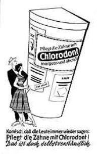 | | "Goldeck - der neue Name für Felsche" (Anm.: 1953 wurde die Firma W. Felsche zum VEB Goldeck verstaatlicht.) | | "Schmerz laß nach", Werbeschild (schätzungsweise um 1955) | | "Pflegt die Zähne mit Chlorodont morgens und abends" |