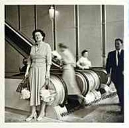 | |  | Rolltreppen waren Ende der 50er Jaher noch etwas Besonderes → | | zwei Freundinnen fotografieren sich gegenseitig davor