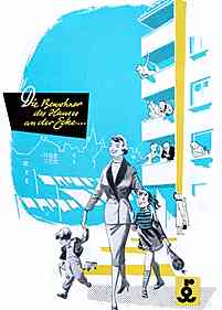 "Warum ist die deutsche Frau so begehrt?" "Kaum eine Frau in der Welt widmet sich ihrem Haushalt mit so viel Liebe wie die deutsche Hausfrau. Das Wohlergehen der Familie, das Glück des Mannes, die Erziehung der Kinder und die Behaglichkeit des Haushaltes, das alles ist für sie Inhalt und Erfüllung ihres Lebens als Frau." - Werbeprospekt der Firma Henkel - Mehr dazu HIER (schätzungsweise um 1956)