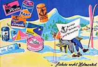 | | Deutsche Bundesbahn - "Sommer Sonne Urlaubsfreude", Plakatmotiv | | St. Moritz - Umgebungsplan (schätzungsweise um 1956) | | "Dampferfahrt das Rheinerlebnis", Faltblatt |