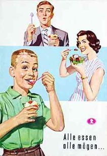 | | "Würfel und Ecken - "Eine Hauszeitschrift der Margarine-Union - "Was früher ein Märchen war, ist heute Wirklichkeit: ein Tischlein-deck-dich mit frischen Erdbeeren... mitten im tiefsten Winter. Diese Wirklichkeit begann in der Bundesrepublik im Jahre 1955, und sie heißt Tiefkühlkost." | | KAUVIT-Kaugummi, Preisliste