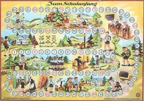 | "Zum Schulanfang", Würfelspiel, 1955, Hans Heine, Spielbrett 49 x 34 cm |
