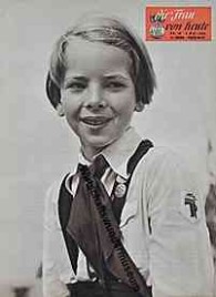 | Zeit im Bild - Titel: "Eltern, denkt an uns, stimmt mit JA!" - Themen z.B.: "Verbot der Volksbefragung isoliert Adenauer und seine Clique", "Wachsender Wohlstand - Erfolge friedlicher Aufbauarbeit", "Verarmendes Westdeutschland" (1951) | | Für die Heimat - "Eine Sammlung von Kurzgeschichten, die von patriotischen Taten Junger Pioniere berichten" (1952) |