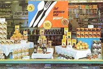 Schaufensterdekorationen: "Gut gegessen und gespart"