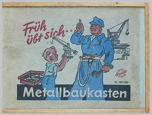 |  | "Früh übt sich..." - Blöder Spruch PLUS erhobener Zeigerfinger - für ein Spielzeug geht das gar nicht! Ein Metallbaukasten, der meine überwunden geglaubten Aversionen wieder aufgefrischt hat... - "Kühle Spiele Halle, Nr. 301 / 302", Vorkriegszeit?