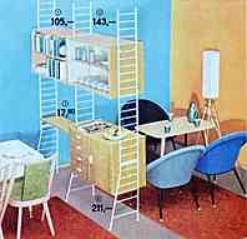 | | "Raumteiler gestalten Ihre Wohnung individuell. Sehr moderne und praktische Gruppierungen, passend für jeden Raum." (1965)