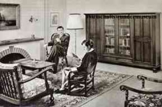 | |  | |  | | "Das Wohnzimmer - Im Wohnzimmer offenbart sich die Kultur eines Hauses, weil er der eigentliche Lebensraum der Familie ist. Oft vereint er gleicherweise zu den Mahlzeiten, wie auch zu abendlichen Plauder- und Erholungsstunden." | | "Das Herrenzimmer – Wählen Sie den Raum des Hausherrn mit besonderer Liebe und Überlegung. Denn in ihm soll sich die beste Schaffenskraft entfalten und sammeln – hier soll Ärger verrauchen und gemütliche Stunden verbracht werden."