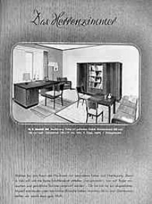 |  | |  | "Wohn-Herrenzimmer, Ausführung in Nußbaum, antik behandelt."