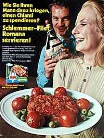 | | Dieser sympathische Zeitgenosse hingegen hat bei der Auswahl seiner Gattin offensichtlich weniger Glück gehabt: "Schatz!!! Da ist ja Parfüm im Essen!" (1968)