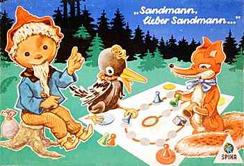 | |  | | "Sandmann, lieber Sandmann!", Brettspiel, SPIKA, 1967, Schachtel 36 x 25cm | | "Sandmann, lieber Sandmann!", Brettspiel, SPIKA |  | "Sandmann, lieber Sandmann!", Spielbrett