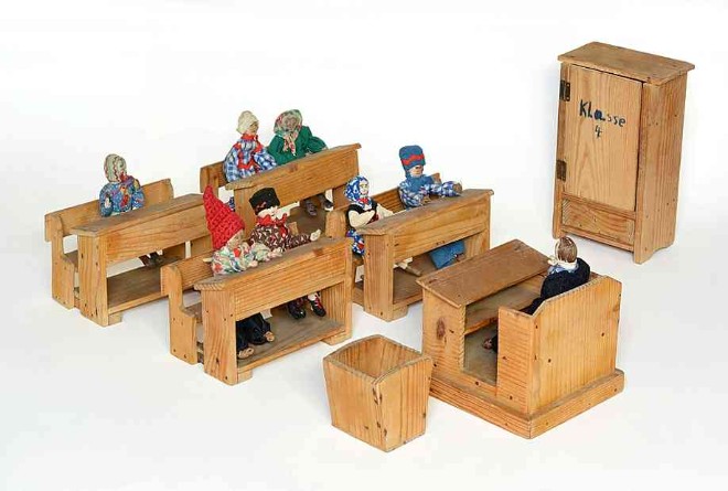 |  | | Puppenschule mit ARI (August Riedeler)-Püppchen, 50er Jahre, Maße: 33 x 46 x 15 cm |  | |  | In der Schule (1954)