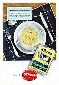 | | "Milch macht schön" | | "Kellog's Corn Flakes und Rice Krispies stets tischbereit, ergeben mit Milch und Zucker ein delikates Frühstück. Sie sind im Handumdrehen serviert." |