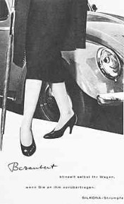 | | Siemens Vollwascher - "Waschen - im Vorübergehn - Ein kurzer Besuch, eine Besorgung? - Bitte, was hindert Sie? - Das Waschen geht nebenher!" | | "Mein Ideal...Singer Automatic" |  | |  | |  | | Elfi Strümpfe - Mehr Strumpfwerbung | | "Auch ER - beinverliebt" - Bi-Strümpfe | | Silkona-Strümpfe - "Bezaubert blinzelt selbst Ihr Wagen, wenn Sie an ihm vorübergehen." |