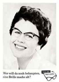 | | "Wer will da noch behaupten, eine Brille mache alt?" - "Besser sehen - besser aussehen"
