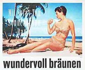 | | "Filmstars in aller Welt lieben die weisse, milde LUX", Lilli Palmer | | "Die moderne Frau" - "Camelia gibt allen Frauen Sicherheit und Selbstvertrauen" | | "Ständige Stimmungsschwankungen, innere Unsicherheit und und körperliche Schwierigkeiten belasten die Beziehung zu Familie und Umwelt. Diese Hemmnisse zu überwinden, brauchen gerade junge Mädchen in den Pubertätsjahren Faruengold." |