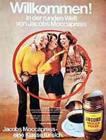| | "Braun Aromaster für 8-10 Aroma-Tassen. Sie bekommen ihn in 4 modernen Einrichtungsfarben: Weiß, Orange, Rot, Oliv. Für 139,-" | | "Willkommen! In der runden Welt von Jacobs Moccapress" |