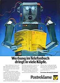 | | "Mach Mutter und Vater öfter mal eine Freude. Ruf doch mal an..." - "Post. damit Sie in Verbindung bleiben" | | Postreklame - "Werbung im telefonbuch dringt in viele Köpfe."