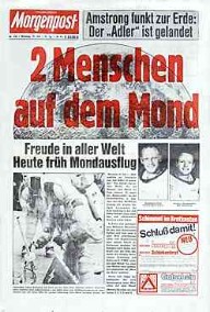 | | Hamburger Morgenpost - "2 Menschen auf dem Mond - Freude in aller Welt - Heute früh Mondausflug"